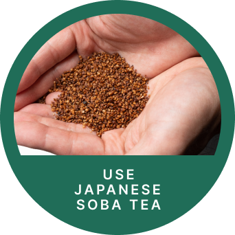 味はもちろんのこと、安心して食べてもらいたい。という思いから国産蕎麦茶を使用しています。